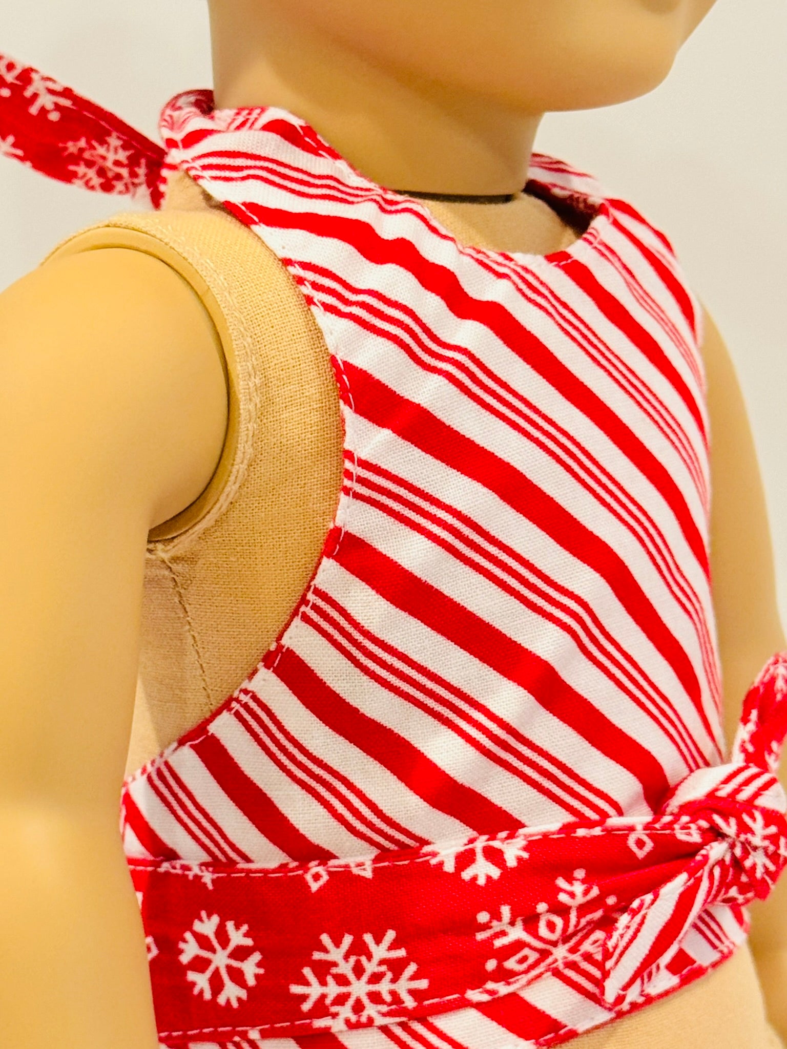 Please note: As all of our items are handmade with love, no two are alike. Due to the fabric used for this top, the item you receive may not look exactly like the one pictured (i.e., the placement of the stripes and snowflakes).